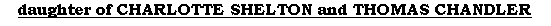 daughter of CHARLOTTE SHELTON and THOMAS CHANDLER