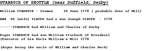 WILLIAM STARBUCK....bp.26 APRIL 1690 / died c.1778 / owner of Shottle WILL