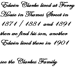 from Green Street . Looking down to St.Marys Church and Thames Street. On the right likewise this road leads down to, or up from Thames Street as it is nowadays a one way system. Out of sight on the left of the picture there are still a row of small cottages where I believe the Cain family lived at one time. A member of the Clark family lived in Church Road opposite the Church and near to the Vicarage in 1901. Just one of many Clarkes who were spread along Thames Street - a ocnsiderable presence in Sunbury. |